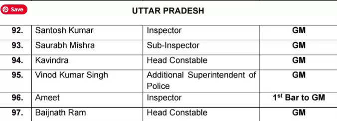 इस वर्ष उत्तर प्रदेश पुलिस के जिन 18 अधिकारियों और कर्मचारियों को वीरता पदक से नवाजा जाएगा, उन्होंने कर्तव्य निभाते हुए असाधारण साहस और बहादुरी का परिचय दिया है। गृह मंत्रालय की सूची के अनुसार सम्मानित होने वालों में ये नाम शामिल हैं-